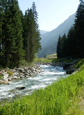 Crystal-clear streams flow through lush valleys, nature's soothing melodies persist.